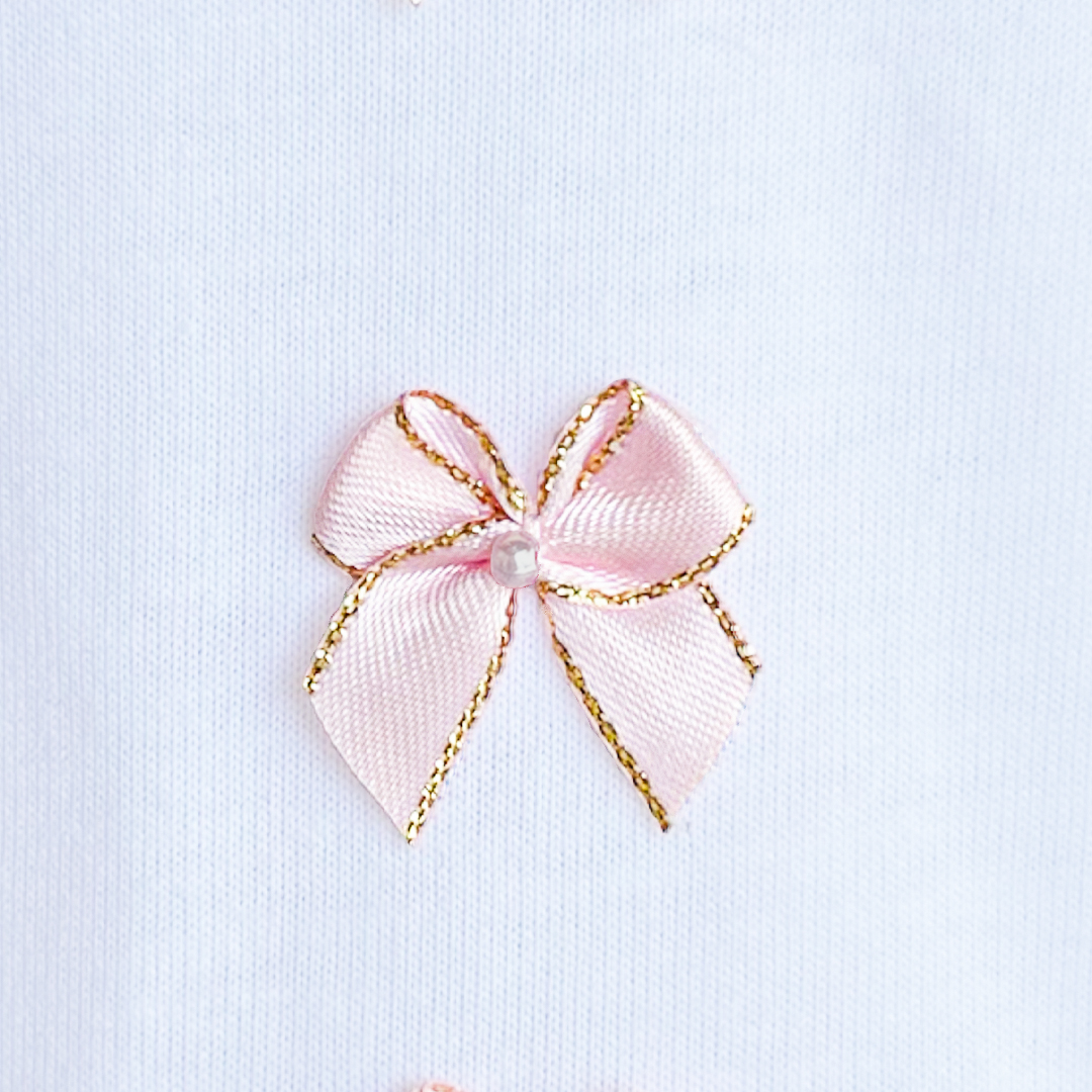 Introducing the Summer Dreams Dog Dress by Hello Doggie! Made from 100% cotton, this dress is perfect for your furry friend to wear on a day out or during summer soirees. The handmade bows on this dress come with a gold trim finish and a pearl, which add a touch of elegance and glamour to your pet's wardrobe. Your dog will surely turn heads and receive compliments in this stunning dress. The breathable cotton material ensures your pup stays comfortable and cool while looking stylish. Whether you're going for a walk or a day out on the town, your furry friend will be dressed to impress in the Summer Dreams Dog Dress by Hello Doggie. Wash on delicate, no bleach or softener, air Dry or tumble on low. Sizes - XXS - L MSRP - $24.00 *Dresses are handmade, sizes may vary slightly. Made in USA.