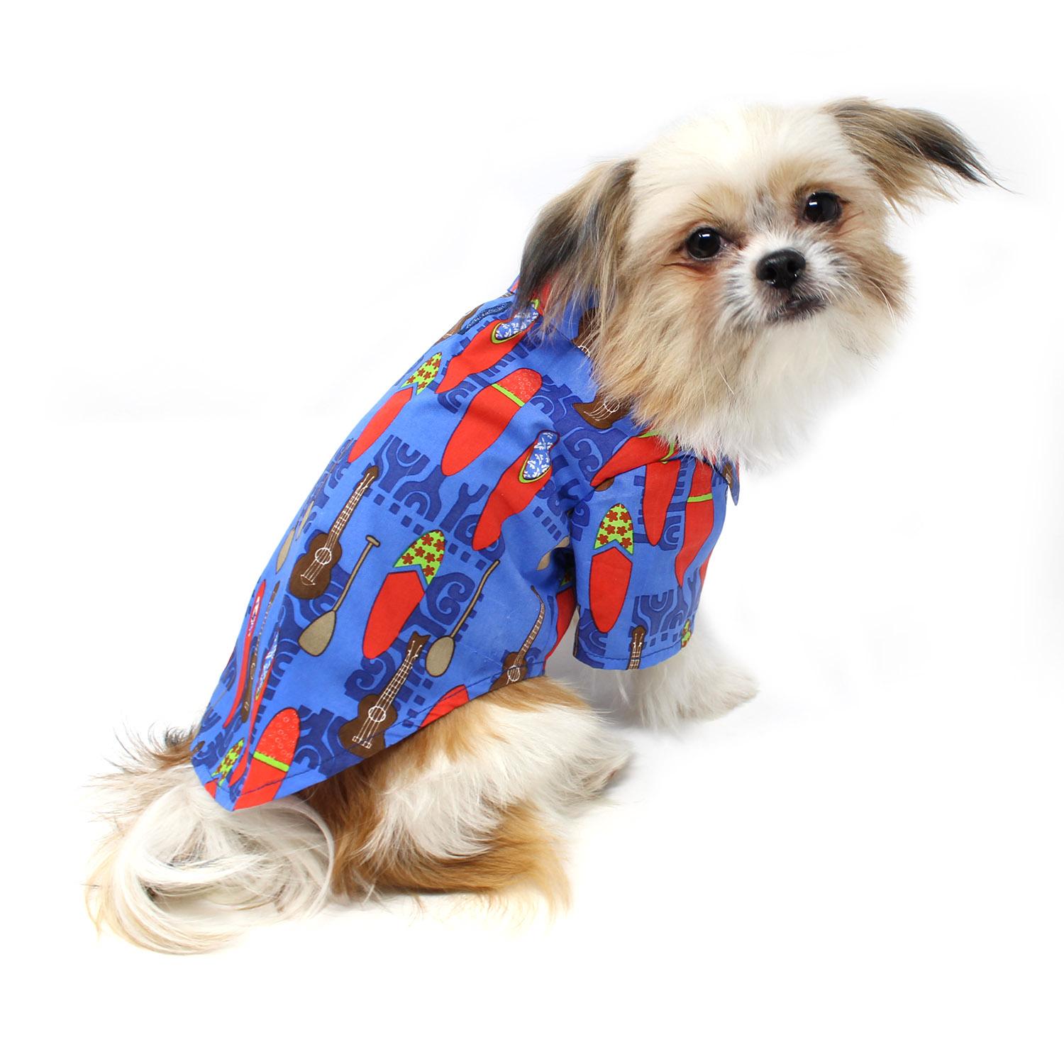 Our 100% Cotton Hawaiian Camp Shirts come in fun brilliant prints and feature a leash hole for simple and easy walking. Make sure to check out our matching designs in many of our other popular products! Aloha!