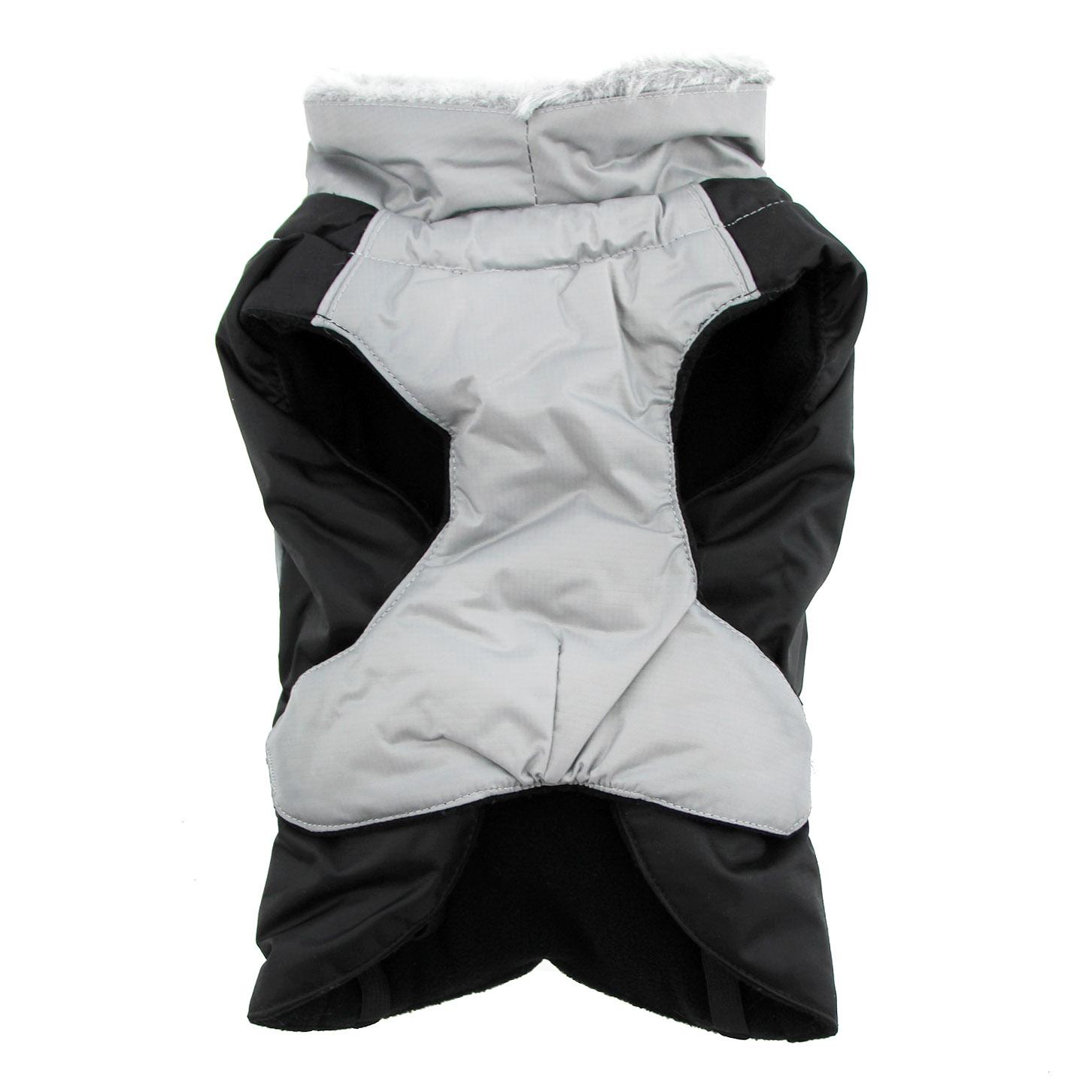They come with adjustable straps, covered d-ring access hole, fur lined collar with neck cinch, and reflective night safety straps and trim.